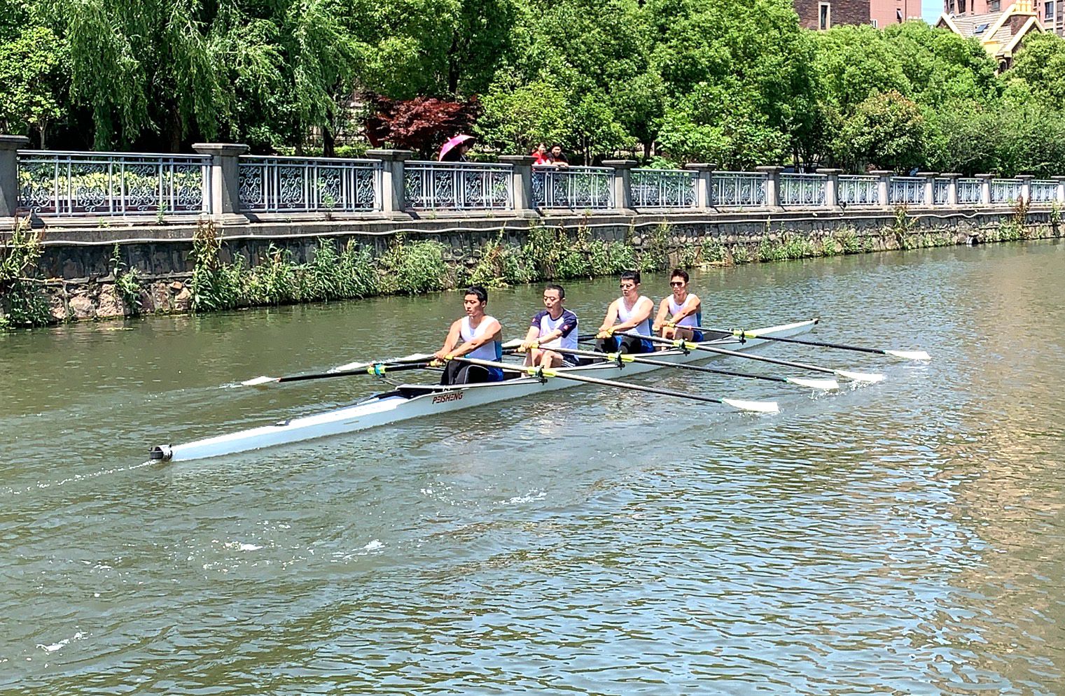 隨后,在場嘉賓共同為新艇庫揭牌。陳勁松校友還和賽艇隊學(xué)生一起體驗了賽艇訓(xùn)練。